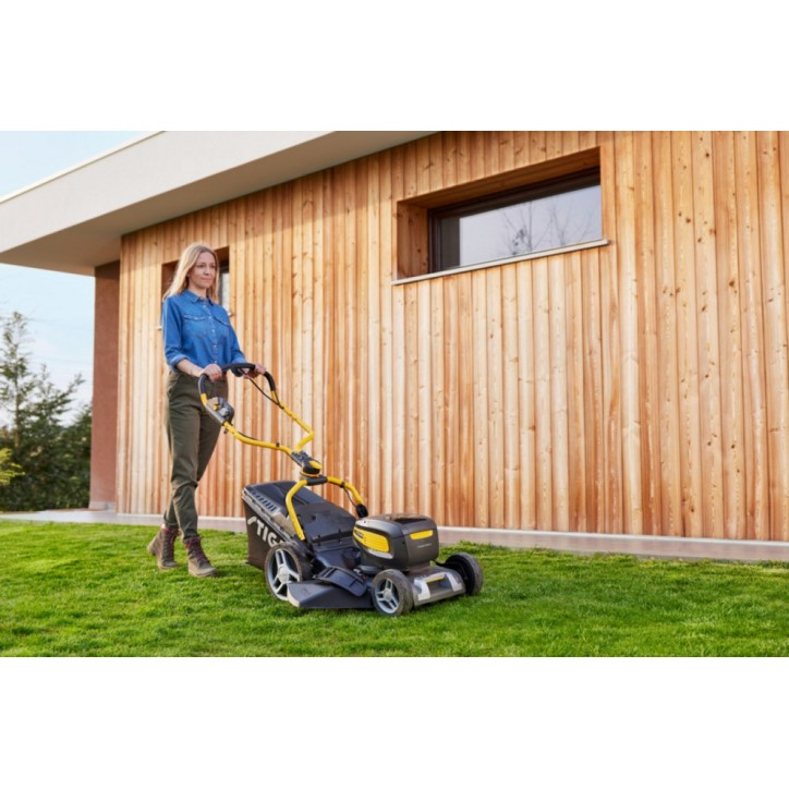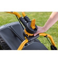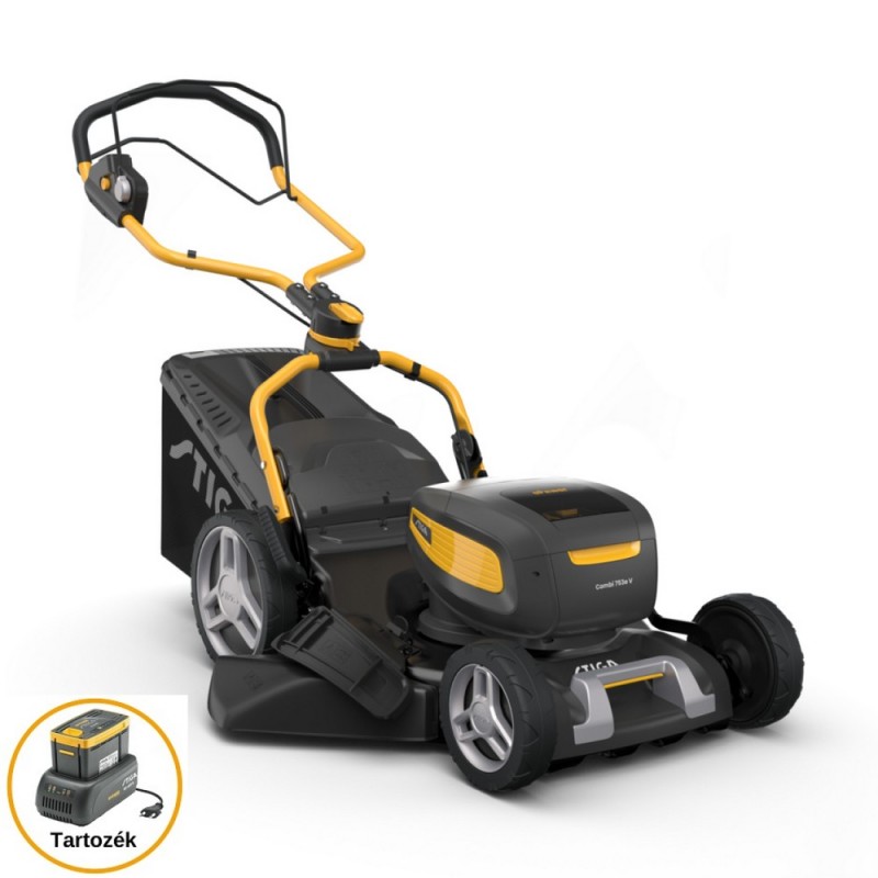 Gyorsítsa fel a fűnyírást a Combi 753e V kit fűnyíróval. Gyors, kényelmes, környezetbarát és nagyvonalú 51 cm-es vágási szélességgel ez a robusztus akkumulátoros fűnyíró gyorsan rendbe teszi a gyepét. Két 48 V-os 7,5 Ah-s akkumulátorral és a mellékelt töltővel hajtva a Combi 753e V kit egyetlen feltöltéssel 30 perc alatt lenyűgöző 750 m² területet nyír le. Az Ön kényelme és komfortja érdekében ez a fűnyíró intuitív billentyűzettel is rendelkezik, amely hatfokozatú variátorral és öko üzemmóddal 4 az 1-ben vágórendszerrel valamint állítható és összecsukható kormányrúddal. Akkumulátor és töltő tartozék. Ajánlott munkaterület 950 ㎡ Akkumulátorfeszültség 48V Akkumulátorkapacitás 2x7.5 Ah Erőforrás Lítium-ion akkumulátor Gyűjtő kapacitása 60 l Kerék Golyóscsapágyazott 200 mm / 280 mm Markolat Összecsukható Meghajtás Önjáró Munkamagasság 22-80 mm Munkaszélesség 51 cm Súly 31 kg Tartozékok Akkumulátor és töltő tartozék. Teljesítmény 1500 W Termék csomagolási hosszúsága 925 mm Termék csomagolási magassága 490 mm Termék csomagolási szélessége 575 mm Termék csomagolási súlya 34,4 kg Vágás módja Gyűjtés, mulcsozás, oldalsó kiszórás, hátsó kiszórás Vágásmagasság száma 6 pozíció Vágásmagasság állítás Központi, manuális Váz Galvanizált acél