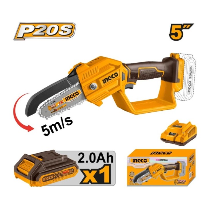 Ez a 20 V-os akkus mini láncfûrész kompakt méretével ideális a kisebb vágási feladatokhoz és metszési munkákhoz.