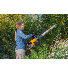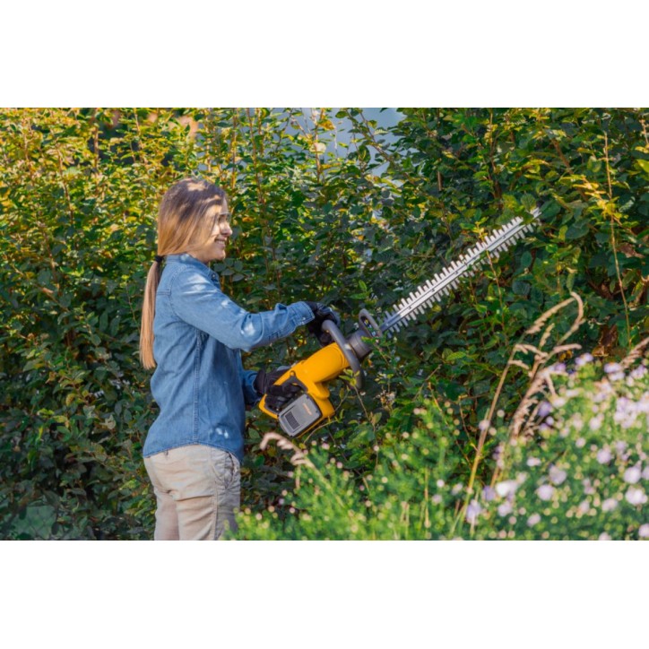 elérhetőA HT 300e Kit egy akkus sövénynyíró, amely könnyedén megbirkózik a nehéz kerti munkákkal. A 2x20 V-os ePower akkumulátorok megfelelő teljesítményt biztosítanak a sövények hibátlan nyírásához. Az 54 cm-es, lézervágott, edzett acélból készült penge a sövény- és bokornyírás hatékony és precíz elvégzésére képes anélkül, hogy kábelek akadályoznák Önt a munkavégzés közben. A 23 mm-es fogközöknek köszönhetően még a közepesen vastag ágakat is könnyedén átvágja. A szerszám akár 1 órán át is működhet egyetlen feltöltéssel, csendesebb alternatívát kínálva a tipikus benzines sövényvágókkal szemben. A további kényelem érdekében ez az akkus sövénynyíró puha és állítható markolattal ellátott fogantyúval rendelkezik, amely 180°-kal elforgatható, így megkönnyítve a sövényfalak függőleges irányú nyírását. A két ePower 20 V-os akkumulátor töltése nagyon kényelmes a STIGA vadonatúj töltőrendszerének köszönhetően. Az akkumulátorokat nem szükséges a gépből kivenni a töltés idejére, egyszerűen el kell helyezni a gépet a mellékelt fali tároló elemre, mely a tárolás mellett az újratöltésről is gondoskodik. Akkumulátor száma 2