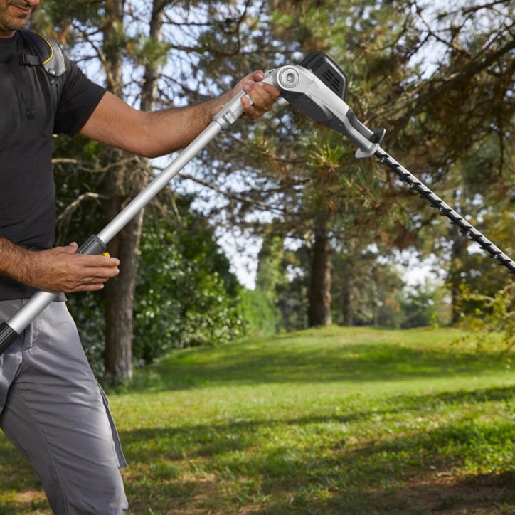 elérhetőErőteljes, precíz és mindössze 5,18 kg súlyú SPH 900 AE magassági sövényvágó új dimenzióba emeli a sövények és a fák nyírását. Fejlett, 400 W-os, kefe nélküli motorja, két 48 V 7,5 Ah akkumulátorral párosítva, amelyek az akkumulátor hámban foglalnak helyet, több mint 200 percnyi folyamatos működést biztosítanak. A teleszkópos hosszabbító tengely eléri a 4 métert. Három sebességgel és hat vágási pozícióval az SPH 900 AE optimális megoldást biztosít bármilyen feladat megoldásához. Csak akkumulátorhámmal használható. Akkumulátorhám és töltő nem tartozék. Akkumulátor típusa Lítium-ion