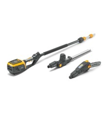 elérhetőAz MT 500e Kit egy könnyű és nagy teljesítményű akkus multifunkciós szerszám, mely egy teleszkópos nyélből és a hozzá illeszthető sövénynyíró és fűrész adapterekből áll. Az eszközzel könnyen vághatóak és metszhetőek a nehezen elérhető bokrok és fák. Ez a robusztus kerti multifunkciós szerszám az ajánlott 48 V-os 2 Ah-s akkumulátorral akár 20 perces vágási időt vagy 8 perces metszési időt biztosít egyetlen töltéssel. A 112°-ban elforgatható fogantyúnak köszönhetően könnyedén megtalálhatja az Önnek legkényelmesebb munkavégzési pozíciót. 48 V 2 Ah akkumulátor és a töltő tartozék.