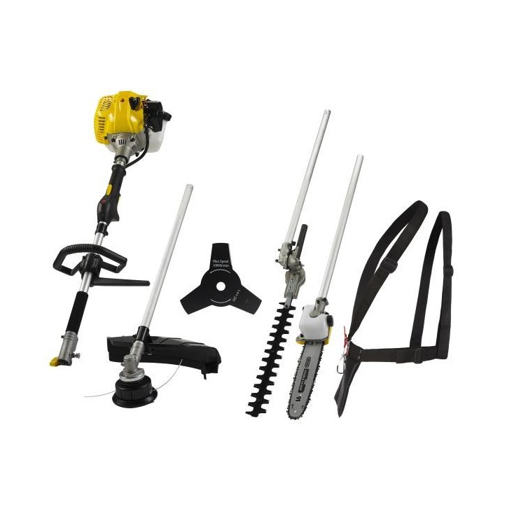 A kétütemű szegélynyíró 0,9 kW teljesítményű. Hengerűrtartalom 33 cm3. 43-as damillal, vagy 25cm-es késsel rendelkezik. 25cm láncfűrész vagy 40cm-es sövényvágó tartozék.