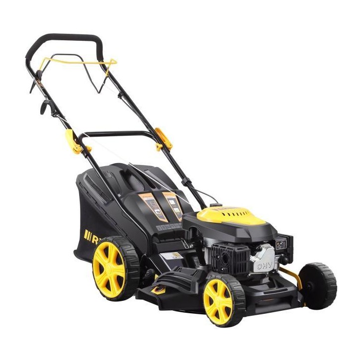 Önjáró multifunkciós fűnyíró 3 in 1 kivitelű kb 700nm-es területre ajánljuk.. A fűnyíró erős, csendes, könnyen indítható 146 cm3-es OHV motorral felszerelt. Az új, modern motor, Euro 5 kibocsátási szabvánnyal rendelkezik. A benzines fűnyírót alacsony fogyasztás és magas nyomaték a sűrű fűhöz tervezték. Új, magas alváz a tökéletes fűnyíráshoz a szegélyek közelében is. A fűnyíró központi vágási magasság beállítása 7 fokozatban történhet. Műanyag gyűjtőkosár. A fűnyíró 146cm3, 3,5 kW teljesítményű. A vágőszélesség 46cm.