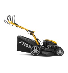 A Stiga Combi 748 SE 4 funkciós hajtott kerekes fűnyíró elektromos indítással. A fűgyűjtés a könnyen levehető, 60 literes telítettség jelzővel ellátott fűgyűjtőbe történik. Nagyobb fű esetén hátsó vagy oldalsó kidobás vagy mulcsozás állítható be. A 46 cm széles, porszórt festésű, robosztus fémház rendkívüli stabilitást és hosszú élettartamot biztosít. Állítható, kényelmes tolókar és központi magasságállítás fokozza a kényelmet. Az erőteljes 139 cm3 -es STIGA motor a közepes méretű kertek remek gépévé teszi. Ajánlott munkaterület 1200 m² Erőforrás Benzinmotor Garantált zajszint 96 dB(A) Gyűjtő anyaga Textil Gyűjtő kapacitása 60 L Kerekek mérete 200 / 280 mm Kerék Golyóscsapágyazott Lökettérfogat 139 cm³ Markolat Összecsukható Meghajtás Önjáró Motor STIGA Motor modell ST 140 LS OHV Autochoke Motorolajtartály kapacitása 0.5 L Munkamagasság 22-82 mm Munkaszélesség 46 cm Súly 32 kg Teljesítmény 2,60 kW Termék csomagolási hosszúsága 925 mm Termék csomagolási magassága 490 mm Termék csomagolási szélessége 575 mm Termék csomagolási súlya 38,4 kg Vibráció Max vibráció a markolaton (m/s2) 5.9 Vágás módja Gyűjtés, mulcsozás, hátsó és oldalsó kidobás Vágásmagasság száma 6 pozíció Vágásmagasság állítás Központi Váz Galvanizált acél Üzemanyagtartály kapacitása 0.9 L