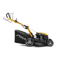 A Stiga Combi 753 V Honda GCVX 170 OHV 4 funkciós hajtott kerekes fűnyíró. A fűgyűjtés a könnyen levehető, 60 literes telítettség jelzővel ellátott fűgyűjtőbe történik. Nagyobb fű esetén hátsó vagy oldalsó kidobás vagy mulcsozás állítható be. A 51 cm széles, porszórt festésű, robosztus fémház rendkívüli stabilitást és hosszú élettartamot biztosít. Állítható, kényelmes tolókar és központi magasságállítás fokozza a kényelmet. Az automata szivatóval szerelt, erőteljes 167 cm³-es Honda motor a nagy méretű kertek remek gépévé teszi. Ajánlott munkaterület 1800 m² Erőforrás Benzinmotor Garantált zajszint 98 dB(A) Gyűjtő anyaga Textil Gyűjtő kapacitása 60 L Kerekek mérete 200 / 280 mm Kerék Golyóscsapágyazott Lökettérfogat 167 cm³ Markolat Összecsukható Meghajtás Önjáró Motor HONDA Motor modell GCVx170 OHV Autochoke Motorolajtartály kapacitása 0.4 L Munkamagasság 22-80 mm Munkaszélesség 51 cm Súly 35 kg Teljesítmény 3.3 kW Termék csomagolási hosszúsága 925 mm Termék csomagolási magassága 490 mm Termék csomagolási szélessége 575 mm Termék csomagolási súlya 40,6 kg Vibráció Max vibráció a markolaton (m/s2) 5.9 Vágás módja Hátsó és oldalsó kiszórás, gyűjtés, mulcsozás (4in1) Vágásmagasság száma 6 pozíció Vágásmagasság állítás Központi magasságállítás Váz Galvanizált acél Üzemanyagtartály kapacitása 0.95 L