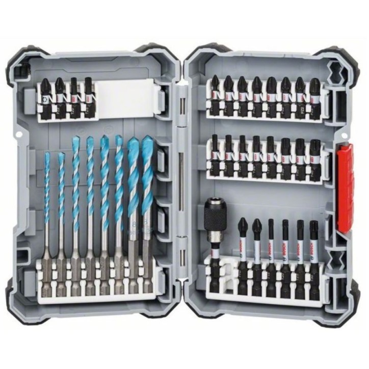 Egyedileg összeállítható készlet, nagy szilárdságú bitekkel A nagy szilárdságú csavarbit anyaga S2 modifikált acél meghosszabbított torziós zónája miatt tökéletes eszköz a hosszan tartó munkákhoz A fúrószárak gyémántköszörülésű vágóélei nagy kopásállósággal rendelkeznek, gyakorlatilag bármilyen anyagban