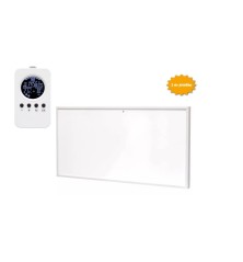 Ez a 720 W teljesítményű fűtőtest falra vagy plafonra szerelhető kivitelben érhető el, így bármelyik helyiségben könnyedén elhelyezhető. Az infrapanelek előnyeit ötvözi a klasszikus fűtési módoknál megszokott hőérzettel, így biztosítva a kellemes és egyenletes meleget. A készülék távirányítóval szabályozható, amelybe vezeték nélküli termosztát is be van építve, így mindig kényelmesen és pontosan állíthatja be a kívánt hőmérsékletet.