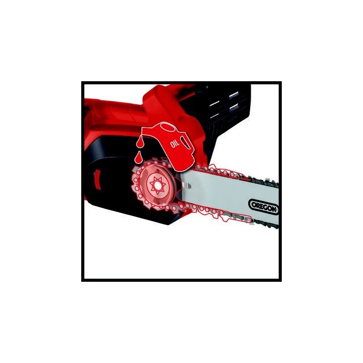 Az Einhell GH-EC 2040 elektromos láncfűrész nagy teljesítményű és megbízható kerti szerszám amely ideális faágak tűzifa és kisebb fatörzsek vágásához. A 2000 W teljesítményű motor erőteljes vágást biztosít miközben a 40 cm hosszú vezetőlemez lehetővé teszi vastagabb faanyagok gyors feldolgozását is. A kiváló minőségű lánc és vezetőlemez pontos és tiszta vágást biztosít. A láncfűrész automatikus lánckenéssel rendelkezik amely folyamatos kenést biztosít a lánc számára így növeli a lánc élettartamát és javítja a vágási teljesítményt. Az ergonomikus markolat és a stabil kialakítás kényelmes és biztonságos használatot biztosít hosszabb munkák során is. Az Einhell GH-EC 2040 ideális választás kerti munkákhoz tűzifa daraboláshoz és faanyag vágásához.