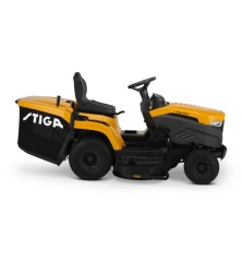 A STIGA ESTATE 598 W, kéthengeres 586 cm3-es Stiga motorral működik, közepes és nagy kertekhez ajánlott. Az ESTATE 598 W pedállal működtetett, hidrosztatikus sebességváltóval rendelkezik. A strapabíró 98 cm-es dupla késes vágóasztal elektromágneses késindítással, 25 és 80 mm között 7 vágási magasság-beállítással tökéletes nyírást biztosít. Ön dönti el, hogy füvet a 240 l-es fűgyűjtőbe gyűjti, vagy mulcsozó dugó behelyezésével mulcsozza. Az ESTATE 598 W puha borítású new comfort kormánykerékkel és új, komfortosabb üléssel teszi kényelmessé a munkát. A LED-es világítással a gép bármely időszakban használható. A vonószem és a mulcsozó készlet széria tartozék. A traktor hátrameneti vágás funkcióval, vezetőkerekekkel a vágóasztalon és lökhárítóval van szerelve.