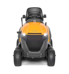 Az ESTATE 9102 W a kéthengeres Kawasaki motorral 7000 m2-es kertekhez ideális. Az új, modern motorháztető LED-es fényszórókat rejt. A nagy (8 l-es) üzemanyagtartály külső betöltőnyílással rendelkezik így utántöltése gyors és egyszerű. Elhelyezése nem gátolja a levegőáramlást a motor körül így a megfelelő hőmérséklet optimalizálja a motor teljesítményét.,Az ESTATE 9102 W pedállal működtetett, hidrosztatikus sebességváltóval rendelkezik. A strapabíró 102 cm-es dupla késes vágóasztal elektromágneses késindítással, 30 és 90 mm között 7 vágási magasság-beállítással tökéletes nyírást biztosít. Ön dönti el, hogy füvet a 320 l-es fűgyűjtőbe gyűjti, vagy mulcsozó dugó behelyezésével mulcsozza. Az ESTATE 9102 W puha borítású kormánykerékkel, kartámaszos, emelt háttámlájú üléssel teszi kényelmessé a munkát. A műszerfal többfunkciós kijelzőjén ellenőrizheti a működési paramétereket. Tempomat biztosítja a kívánt sebességet.