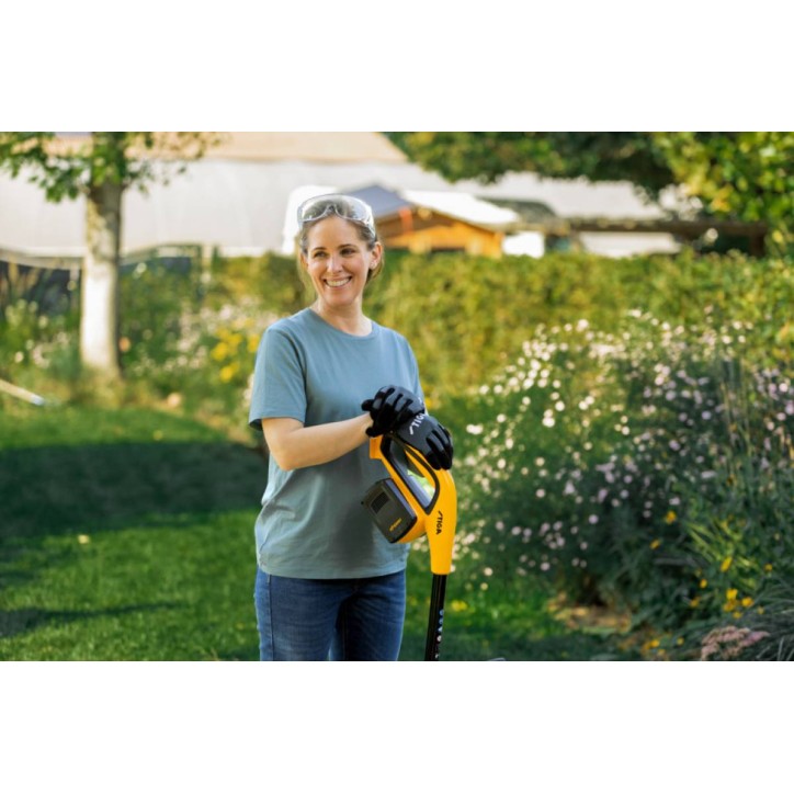 A GT 300e Kit egy akkus szegélynyíró, amely két 20 V-os ePower akkumulátorral (2Ah) működik, így a nyírás és a szegélynyírás élményt nyújt. Ez a szegélynyíró nagy teljesítményű motorral, optimálisan kiegyensúlyozott 2x20V 2Ah akkumulátorokkal és puha markolatú ergonomikus fogantyúval rendelkezik, amely biztosítja, hogy könnyedén levágja a gyomokat. Egyetlen feltöltéssel több mint 30 perc üzemidővel ez a gép tökéletes végeredményt biztosíthat a gyepnek a nyírás vagy szegélyezés által. A teljes kényelem érdekében a trimmelő teleszkópos szárát a méretéhez igazíthatja, ezzel fokozva az élményt. Egyetlen érintéssel válthat a nyírásról szegélynyíró üzemmódra, amely az egyik oldalon 90°-kal elforgatható szegélynyíró funkciót tartalmaz, hogy finomítsa a gyepet, a szegélyeket és a feljárót. A 45°-ig állítható forgó fej a precíz nyírást is lehetővé teszi, amit egy távtartó konzol is segít, amely lehetővé teszi a pontos vágást a növények és egyéb tárgyak körül. A két ePower 20V-os akkumulátor közvetlenül a fedélzeten tölthető fel a vadonatúj STIGA töltőrendszer segítségével. Emellett a mellékelt tárolórendszerrel a szerszámot a falra is felakaszthatja a tárolás és a feltöltés érdekében. Akkumulátor száma 2 Akkumulátor típusa Lítium-ion Akkumulátorfeszültség 2 x 20V Akkumulátorkapacitás 2-4 Ah Akkumulátortöltő Szimpla, standard Damilfej Automata adagolás kettős szál Hám Nincs Markolat Hurok Max. munkaidő 37 perc (+/- 20%) Motor 500 W Munkaszélesség 30 cm Szár Teleszkópos Súly 3.7 kg Tartozékok 2x2Ah akku és standard töltő Termék csomagolási hosszúsága 1125 mm Termék csomagolási magassága 156 mm Termék csomagolási szélessége 259 mm Termék csomagolási súlya 5,84 kg