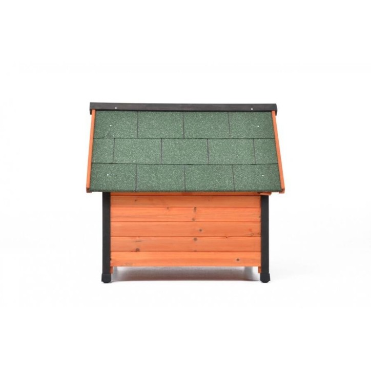 Kutyaház fenyő anyagból zsindely tetővel, műanyag lábakkal. Kutyaház mérete: 85x74x75cm