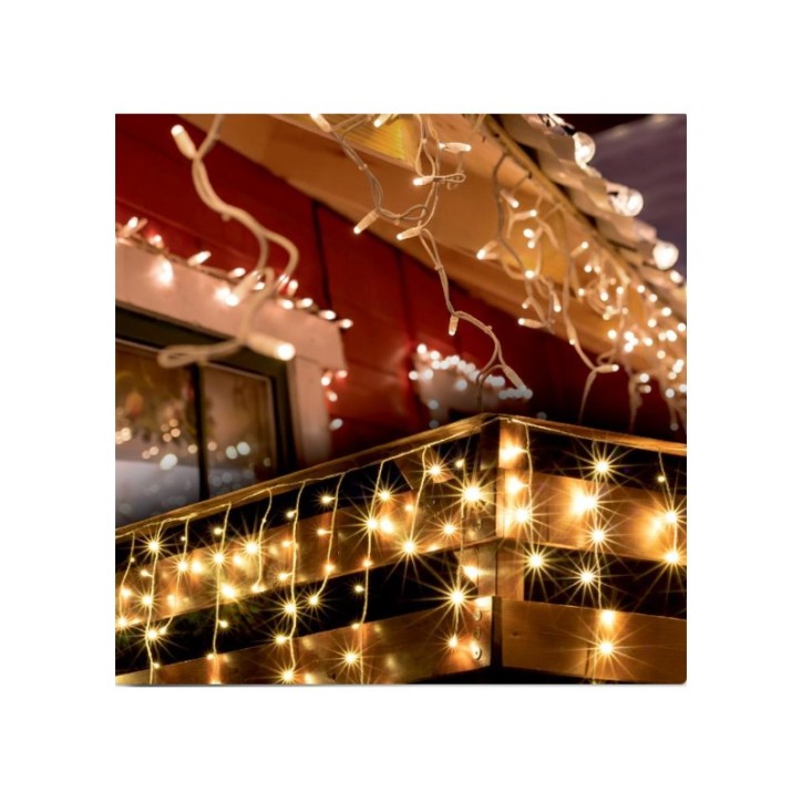 Hozza el a téli varázst otthonába az KKF 608/WW LED-es jégcsap függönyével! Ezzel a lenyűgöző fényfüzérrel kül- és beltéren is megalapozhatja a hangulatot. A 600 LED fényes ragyogása és a melegfehér színhőmérséklet egyszerre adja meg az igazi ünnepi érzést. Az 20 méter hosszú függöny fehér vezetéke elegánsan illeszkedik a környezetbe. A 8 program, a memóriás funkció és a választható időzítési módok teszik lehetővé, hogy a fények mindig a kívánt módon világítsanak. A folyamatos üzemmód vagy a 6 óra bekapcsolt és 18 óra kikapcsolt állapotú ismétlődő időzítés kényelmes megoldást kínál. Az KKF 608/WW jégcsap függönyéhez kültéri IP44-es hálózati adapter tartozik, így a fények mindig stabilan és biztonságosan működhetnek. Hagyja, hogy az ünnepi fények megelevenítsék otthonát, és teremtsen varázslatos légkört minden alkalomra!