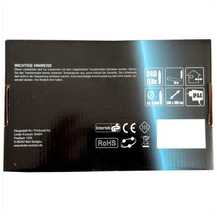 Tápkábel kb. 10 m / méret (SzxH) kb. 300 x 300 CM