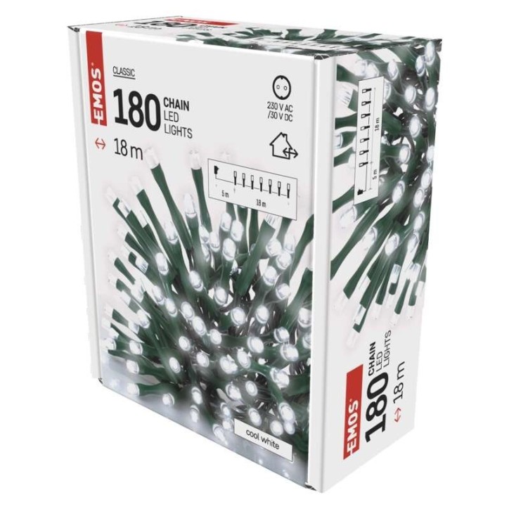LED fényfűzér 180 LED (18m) és 5 m hosszú kábellel, kül- és beltéri használatra karácsonyi égősor vagy további felhasználásra. Biztonságos (IP44) védelemmel ellátva. A LED fényfűzér időzítővel rendelkezik (6 óra). A megfelelőségi nyilatkozat a gyártó oldalán elérhető.