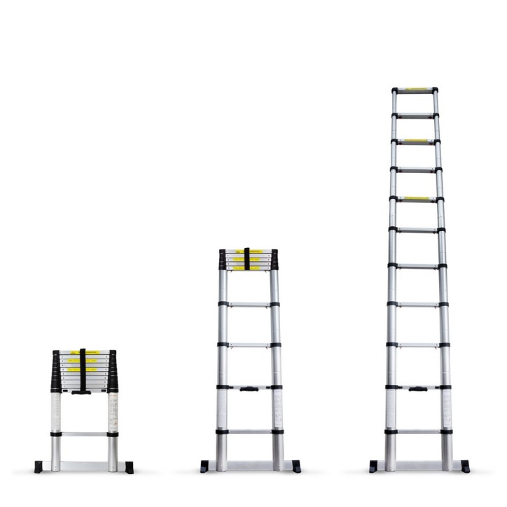 Ez a praktikus teleszkópos létra lágy zárással működik, összezáráskor szépen fokozatosan engedi vissza a létra szárát. A teleszkópos létra teljes hossza 3,8 méter. Teleszkópos kivitelének köszönhetően egész kis helyen is tárolható. Könnyen tárolható és helytakarékos, egykattintásos automata rendszerével pedig a soft-close technológiával gyorsan és biztonságosan visszahúzható. A kiegészítő kereszttartó optimális állványt, a kétoldali létrapapucsok pedig biztonságos állványt és magas munkabiztonságot biztosítanak. A beépített becsípődés elleni védelem megakadályozza a létrafokok közötti becsípődést összecsukáskor.