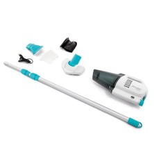 Akkumulátorral működő medenceporszívó ideális pezsgőfürdők, úszómedencék és pancsolómedencék tisztítására. Ez a praktikus víz alatti kézi porszívó két tisztítókefével és egy könnyű, kiváló minőségű alumínium teleszkópos rúddal (280 cm) található. A beépített akkumulátor töltöttségi szintjelzővel rendelkezik, és akár 100 percig is üzemelhet. Az akkumulátor töltési ideje körülbelül 6 óra.