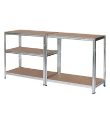 5 fapolc, horganyzott, gyors összeszerelés a bedugható rendszernek köszönhetően, teherbírása: 175 kg polconkénti egyenletes terheléssel, teljes teherbírás (5 polc): 875 kg, TÜV által tesztelt, polcként vagy munkaasztalként összeszerelhető