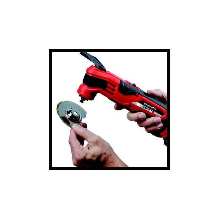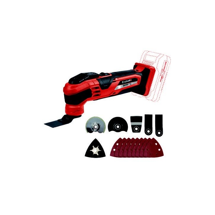 Az Einhell VARRITO Solo akkus multicsiszoló sokoldalú multifunkciós szerszám amely alkalmas vágásra csiszolásra kaparásra és különböző felújítási munkákra. A Power X-Change 18 V akkumulátoros rendszer kábel nélküli munkavégzést biztosít miközben az állítható rezgésszám pontos és kontrollált munkát tesz lehetővé fa műanyag és fém felületeken.