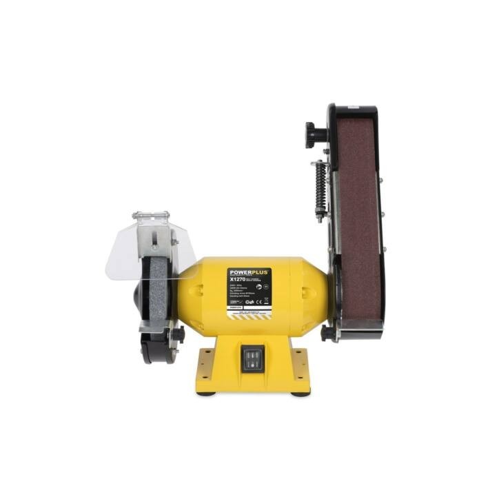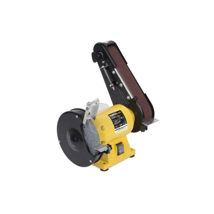 0Powerplus köszörű, 240W. 3 év jótállás. Részletes információk a kezelési útmutatóban. Hálózati feszültség 230 V Hálózati frekvencia 50 Hz Bemenő teljesítmény 240 W Sebesség 2950 min-1 Csiszolókorong max. vastagsága 20 mm Csiszolókorong átmérője 150 mm Korong furata 12,7 mm Csiszolószíj szélessége 50 mm Csiszolószíj hossza 686 mm Működési időtartam 30 min Súly 7,9 kg Zajszint 102 dB(A) Kábelhosszúság 2 m