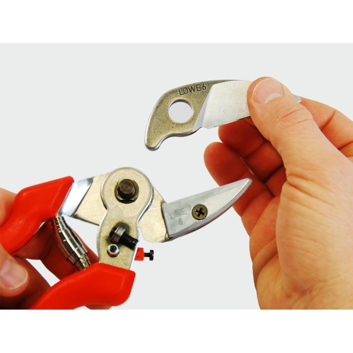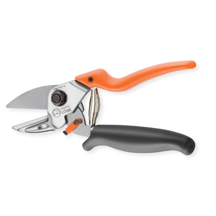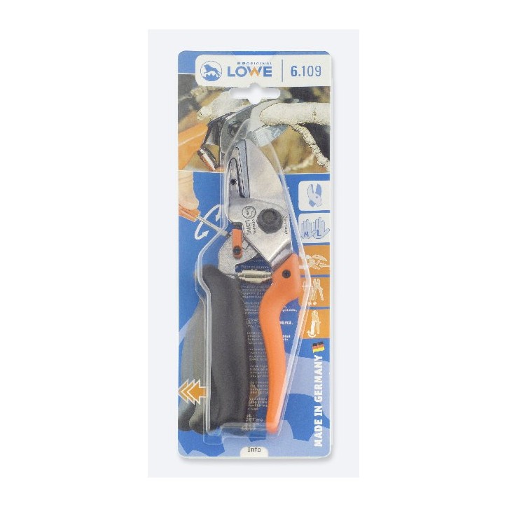 A Löwe 6.109 rávágós metszőolló forgó nyéllel - Forgónyeles Löwe metszőolló modell. A metszőolló egyenletesen terheli a kezet, így a munka kevésbé fárasztó. Nem roncsolja a növényt. A forgó nyél használata folyamatosan metszőknek ajánlott, mivel az ujjakat és a kezet hihetetlen módon kíméli. A csapágyazás könnyű görgőkön fut és rendkívül tartós. A vágás szélessége állítható, és a pengék könnyen, gyorsan cserélhetők.