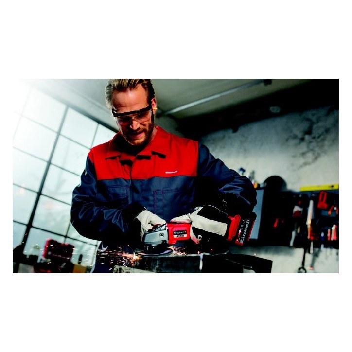 Az Einhell AXXIO 18/125 Solo akkus sarokcsiszoló nagy teljesítményű Power X-Change rendszerű flex amely ideális választás fém vágásához csiszolásához és különböző felületek megmunkálásához műhelyben vagy építkezésen. A 18 V-os akkumulátoros rendszer kábel nélküli munkavégzést biztosít miközben a hatékony motor és a 125 mm átmérőjű tárcsa gyors és pontos munkát tesz lehetővé. A lapos fém hajtóműház segíti a szűk helyeken történő munkát miközben az ergonomikus Softgrip markolat és a három pozícióban felszerelhető oldalfogantyú stabil és kényelmes használatot biztosít. A túlterhelés elleni védelem és a lágyindítás növeli a szerszám biztonságát és élettartamát. Az Einhell AXXIO 18/125 Solo akkus sarokcsiszoló ideális választás barkácsolók és szakemberek számára akik mobil és erős flexet keresnek.
