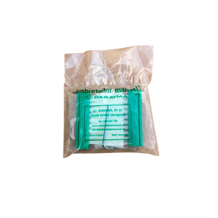 Kézi törzstisztító kefe leírása (a terméket egy másik adatlapon találja): Kényelmesen és gyorsan használható, így időt és energiát takarít meg a törzstiszíttás közben. eAz enyhén döntött kivitelnek köszönhetően átöleli a törzset, majd fel-le huzogatással megtiszítja azt. A kefék kisebb-nagyobb nyitásának köszönhetően könnyedén beállítható a törzs vastagságához.Hasznbálható: olajbogyó, mandulafák, gyümölcsfák, díszfák, szőlőtőke stb. ELŐNY: Alacsony költségű. A termelést nyereségessé teszi a hektáronkénti felhasznált órák számának csökkentésével. Függőleges testhelyzetben dolgozhat (elkerüli a hátfájást). A következő évi metszésből eltávolítjuk a hajtásokat. 1100 növény/óra időtartam. 35 perc/ha megtakarítás. ami 2,20 órát jelent / munkanap.