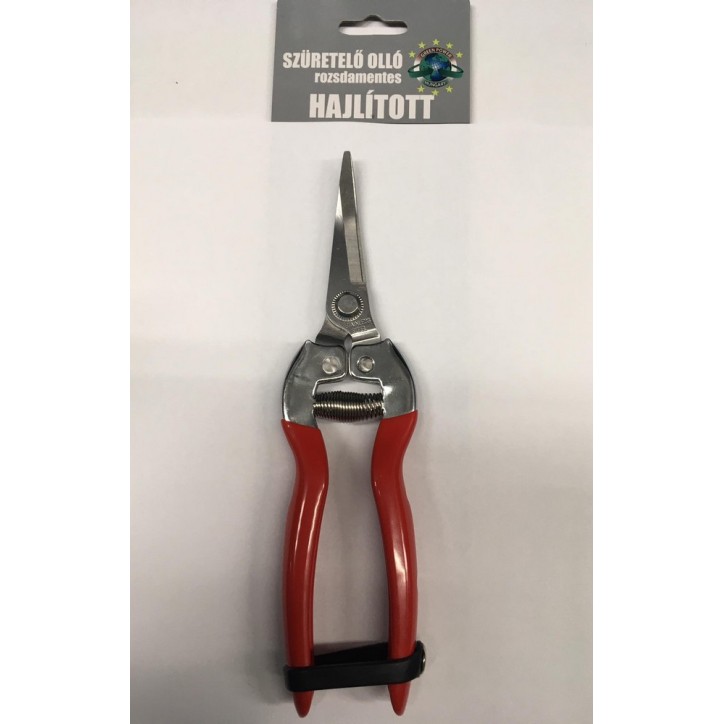 20Az hajlított végű szüretelő olló rozsdamentes, rugó védelemmel van ellátva. A szüretelő olló hosszúság 18,5 cm. A szüretelő olló alkalmas bokrok, szőlő, paradicsom, paprika, bodza stb. és fűszernövények metszésére is. Amennyiben rendszeresen gondozza növényeit, nagy hasznát veszi a szüretelő ollónak, amely rugó védelemmel hosszútávon szolgálja Önt. A szüretelő olló csúszásmentes markolata csökkenti a kéz fáradtságát. Amennyiben egész nap az ollóval fog dolgozni, legjobb választás. Nettó súly: 100g