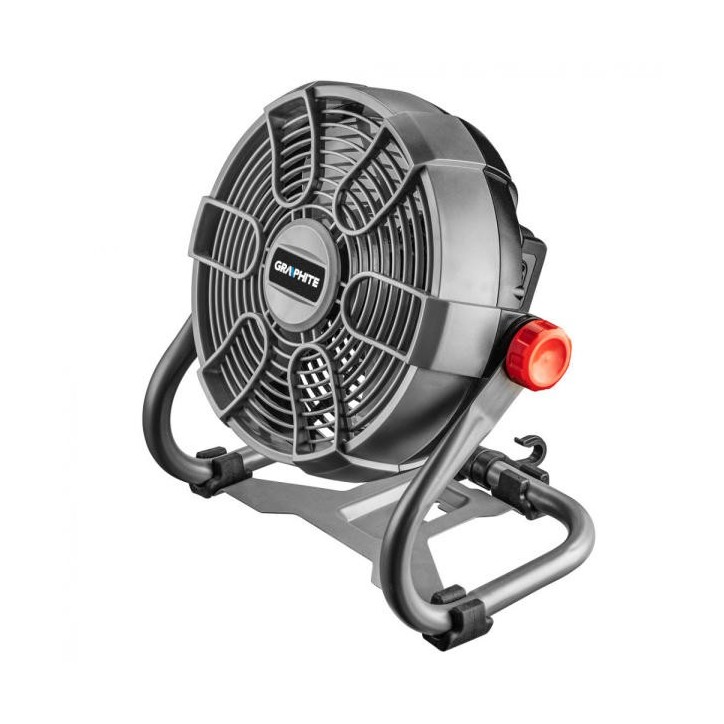 A GRAPHITE Energy+ 18V-os akkumulátoros és hálózati ventilátor akkumulátoros és hálózati tápegységgel egyaránt rendelkezik. A levegő sebességét két fogaskerék szabályozza: I 0-2573 rpm, II 1635 rpm. A készülék beépített be- és kikapcsolóval rendelkezik. A ventilátor kompatibilis az Energy+ akkumulátorokkal. A készülék álló vagy lógó helyzetben is működhet. A ventilátor szögbeállítási funkcióval van felszerelve. Az Energy+ 18V GRAPHITE akkumulátoros hálózati ventilátor akkumulátoros és hálózati tápellátási lehetőséggel is rendelkezik. A levegő sebességét két fogaskerék szabályozza. A készülék beépített be- és kikapcsolóval rendelkezik. A ventilátor kompatibilis az Energy+ akkumulátorokkal. A készülék álló vagy lógó helyzetben is működhet. A ventilátor szögbeállító funkcióval rendelkezik. Energia + 18 V, Li-lon ventilátor kettős biztosítással, akkumulátorral vagy hálózati feszültséggel, két sebességfokozat: I 0-2573 rpm, II 1635 rpm, beépített kapcsoló, súlya 2,3 kg, kompatibilis az Energy + akkumulátorokkal. A készülék függőleges vagy függő helyzetben működtethető, a légáramlási szög kézikönyve mellett.